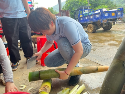7月2日,“乐雅西乡·筑梦基层”突击队来到树山村学习并协助笋农进行竹笋砍摘,suncitygroup太阳新城党总支副书记全艳、学工组组长刘国杰、suncitygroup太阳新城学生党支部书记潘栩涵、团总支书记袁铭汉以及辅导员葛润琪一起走进乡村基层,与突击队一同亲身体验劳动的乐趣。通过笋农的介绍,突击队成队员们了解了如何寻找成熟的麻竹笋、如何控制力道与方向砍笋、如何实用砍刀等知识,老师们与队员们积极参与砍笋、剥笋的实践活动,在享受劳动快乐的同时,也加强了对麻竹笋的生长环境、种植特点等方面的了解,发挥自身的战斗作用和吃苦耐劳精神。