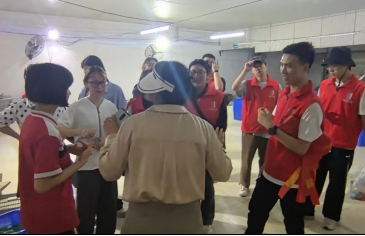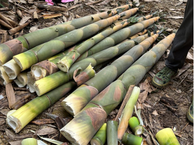 老师们与突击队队员们学习并协助笋农进行竹笋砍摘