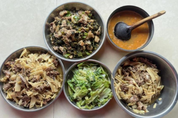 老师们与突击队队员们一同品尝竹笋菜肴
