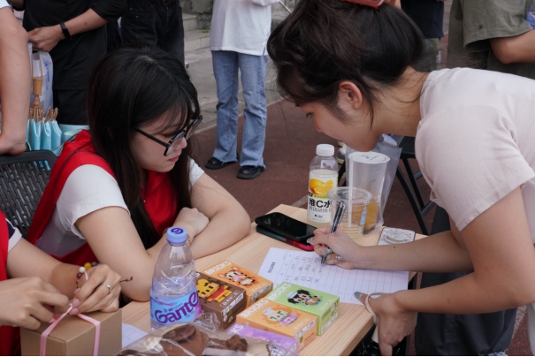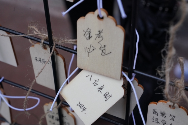 活动开始前,工作人员们还在区域内分设了各个活动的范围,并为同学们耐心讲解了游戏规则。同学们积极参与游戏赢得奖品,并且在祈福牌上写下自己最诚挚的愿望,书写下对学院的美好祝福,也写下了诗词和祈愿文。祈福牌上不仅寄托着同学们对未来的向往与希望,还传承了中华民族重视承诺的价值观。