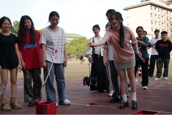 本次游园活动设置有“主题打卡点”“飞环套奖”“投壶”“猜灯谜”“祈愿祝福”五个游戏项目,同学们参与游戏即有机会赢得奖品。游园游戏内容涵盖了诗词歌赋、历史典故、民俗风情等中华优秀传统文化。整个活动现场都弥漫着浓浓的“中国风”氛围,吸引了许多同学前来参加。通过完成游戏获得礼品的奖励机制,调动起同学们参与游园活动的积极性,激发了同学们学习中华优秀传统文化的热情,让suncitygroup太阳新城的同学们近距离感受到了传统文化的博大精深。