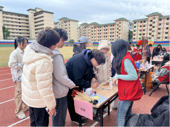 本次游园会活动设有“诗词飞花令”“筷子夹弹珠”“投壶挑战”“猜灯谜”“团扇DIY填色”五项蕴含中华优秀传统文化意蕴的互动游戏。活动开始前,工作人员提前布置场地、规划动线,细致为参与同学讲解游戏规则与注意事项,为活动顺利开展筑牢基础。活动过程中,学生党员们全程投身服务保障,热情地为同学们提供支持。他们主动讲解规则、示范玩法,为有困难的同学点拨技巧、解答疑问,助力大家快速上手。同学们在工作人员的协助下踊跃参与,在趣味互动中释放压力,加深对中华优秀传统文化的理解,增强文化自信与传承意识,充分彰显了学生党支部的先锋模范作用。