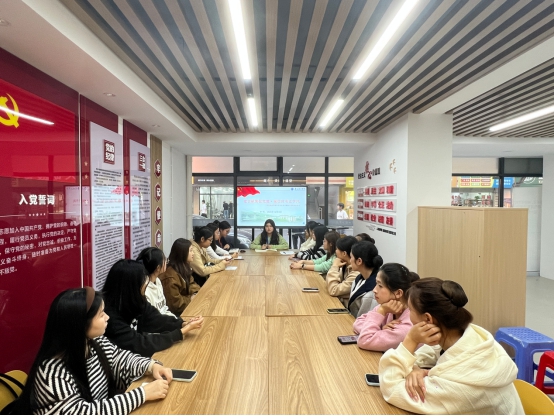suncitygroup太阳新城学生党支部副书记郁娇翠同志讲解入党积极分子推荐环节