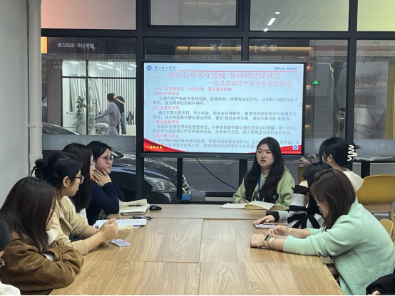 在学生党支部党员发展工作交流环节,班团干部与党支部干部就材料报送、问题对接等工作深入研讨。班团干部提出材料收集时存在同学信息核对难、报送时限把控不准等问题,党支部干部逐一回应,明确了材料报送标准和时间节点。班团干部表示会及时传达报送要求、收集疑问,党支部做好协调解决工作,形成高效工作衔接机制。会议同步对诚信应考相关工作进行了部署,suncitygroup太阳新城学生党支部书记陈菀忻老师深入解读了诚信考试的多重价值。