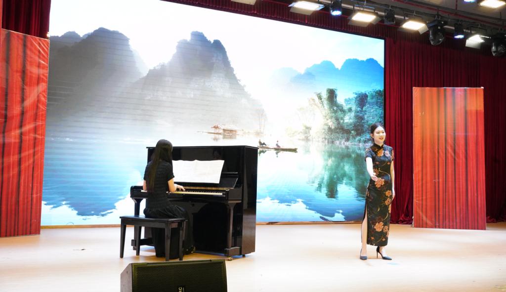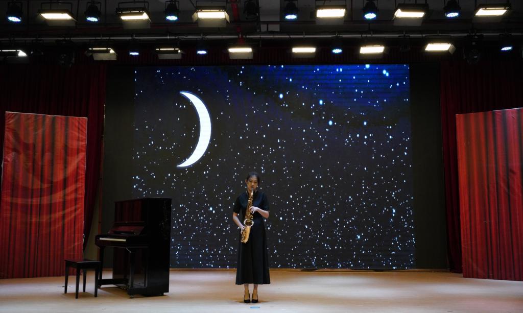 音乐会以龙金城同学演唱的《桐泪滴中秋》拉开序幕,此曲以描述游子对家乡的思念之情;张欣怡同学弹奏的古筝曲目《晓雾》引发着我们对京城生活情调的联想,一切都是那么庄严而又神秘、古老而富朝气,如梦幻般给人以无限遐想和回味;唐心怡同学演奏的萨克斯独奏《小夜曲》仿佛让我们看到一对恋人的窗前对唱的爱情歌曲一般,萨克斯的声音缠绵婉转,悠扬悦耳,令人情不自禁陶醉其中;钢琴《庞塞e小调间奏曲》由谢依晨同学演奏,其节奏和旋律充满温柔与浪漫,完美展现了它的魅力;钟欢同学演唱的《星满天》,仿佛让我们看到了蔡素屏对远方爱人的绵绵思念;刘嘉怡同学演唱的《青玉案•元夕》让我们仿佛置身于在一片黑暗中突然看到了希望,内心带着一点迟绽的希望和光明。最后,秦进业演唱的《白云故乡》为音乐会画上了圆满的句号。