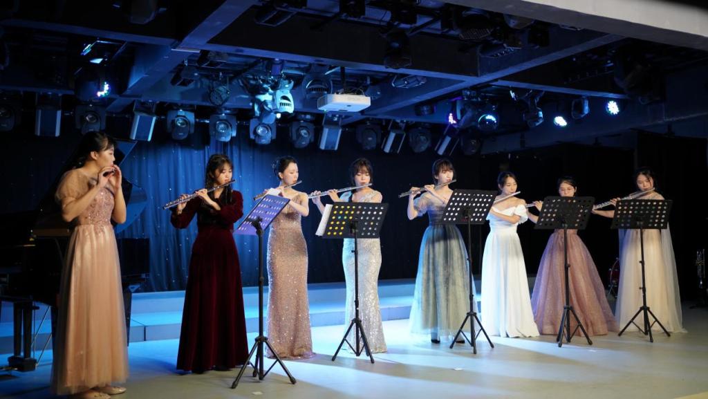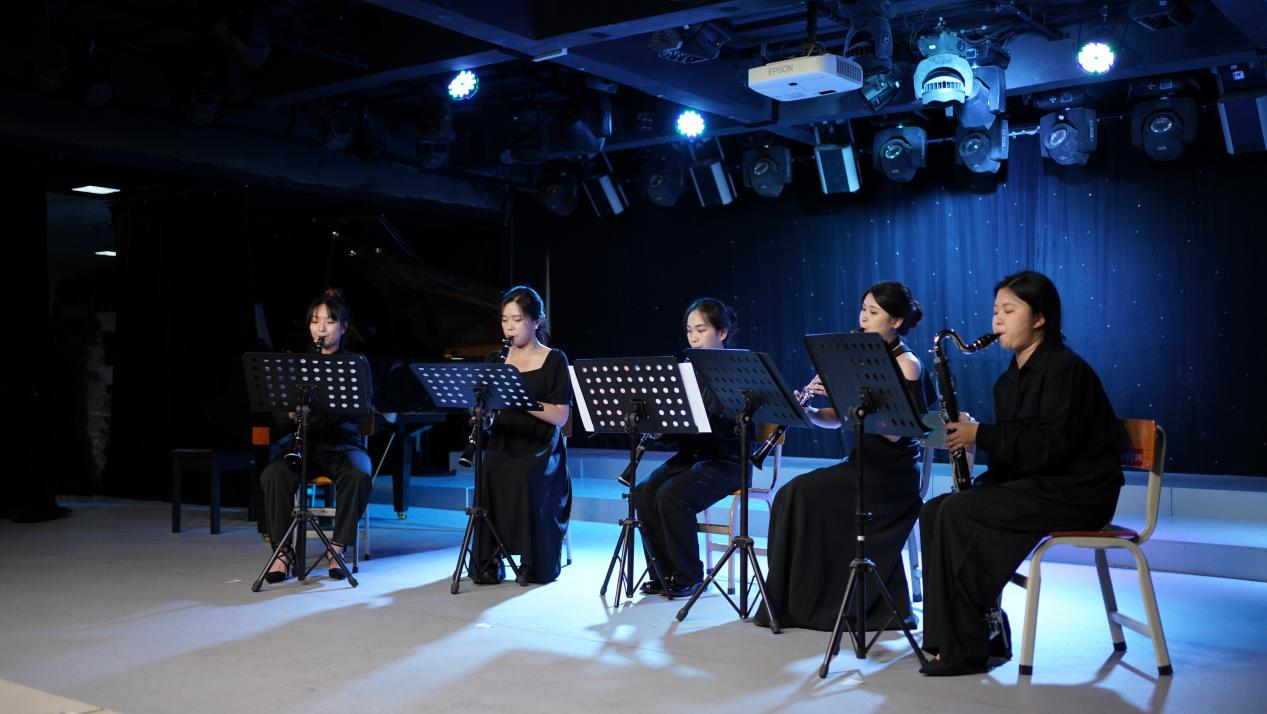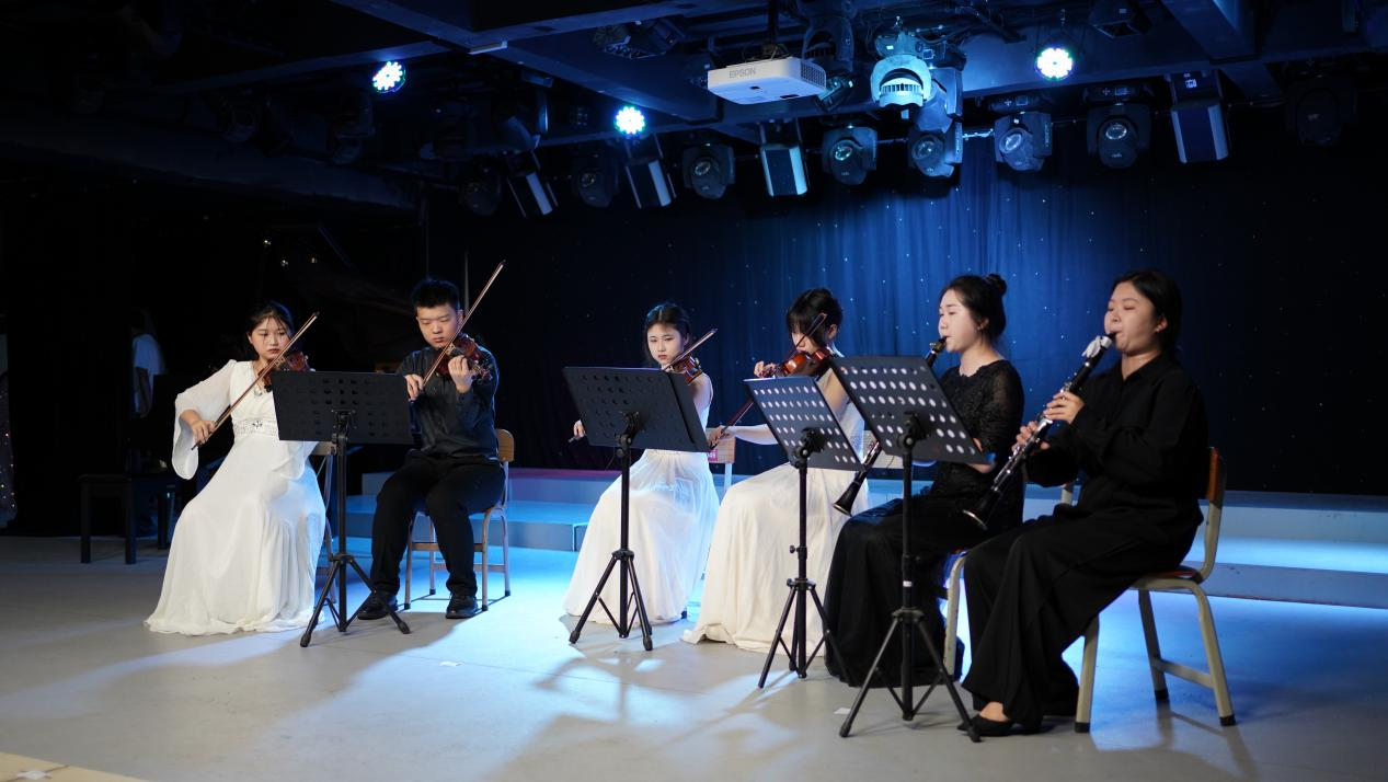 “乐在其中”音乐会以严雪、陈芷茵等五人演奏的《土耳其进行曲》拉开序幕,乐曲的主题简洁而极其节奏化,全曲都贯穿着十六分音符的活泼感; 接着通过谭惠文、冯竹儿演奏的小提琴二重奏《巴赫d小调双小提琴协奏曲》这两把小提琴旋律的交替,深刻体现了巴洛克音乐富于装饰的风格和富有数学美感的精致乐曲结构;吴秋妍、彭紫欣演奏的单簧管二重奏《Twin Clarinets》是作曲家朱塞佩·里科塔的原创作品; 冯竹儿、谭景元、陈文朗演奏的《军队进行曲》描写了士兵行进时的雄姿和人们在街头欢迎士兵的场面; 而后王梦琪独奏的《阳光灿烂照天山》通过热情洋滥的快板,讴歌了天山南北各族人民的幸福生活;谭惠文、冯子晏、彭紫欣等六人演奏的《瑶族舞曲》丰富、生动地展现了瑶族民众欢歌热舞的喜庆场面; 紧接着罗茵演奏的《在内蒙古草原》丰富多彩地体现了蒙古族的文化风貌,是蒙古族色彩浓的一首长笛曲; 吴秋妍独奏的《来自中国的色彩》有着优美的中国风格旋律,时至今日己成为单簧管音乐会上最常被演奏的中国风格曲目之一; 最后音乐会以充满欢庆气息的长笛重奏《花好月圆》画上一个圆满的记号。