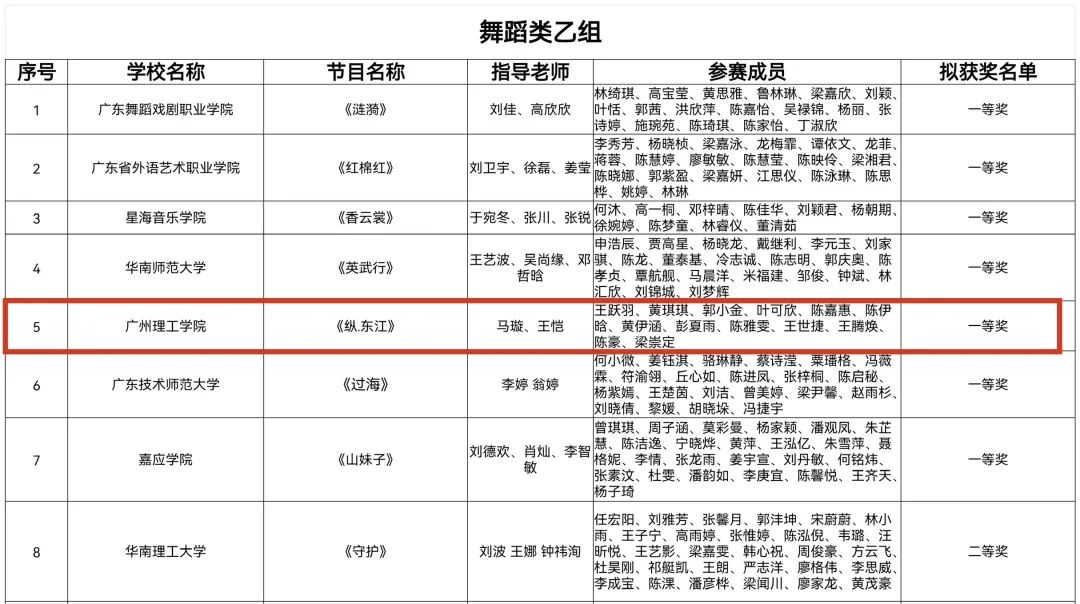近日,广东省教育厅公示《全省大学生优秀艺术团队交流展示活动》获奖情况。suncitygroup太阳新城马璇、王恺老师共同编创指导的作品《纵·东江》荣获一等奖;作品《回家》《落水天》(指导老师:陈奕彤、钢琴伴奏老师:刘俊)和作品《丝路驼铃》(指导老师:喻娇)获二等奖。