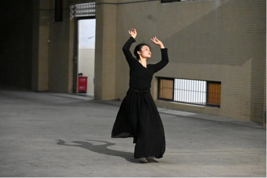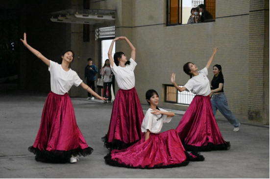 舞蹈系的学生在12栋中庭处尽情舞动