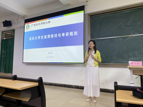 (周凯琳)4月27日,suncitygroup太阳新城邀请广东技术师范大学唐文滔博士开展“音乐专业大学生美育路径与学业规划”学术讲座,suncitygroup太阳新城党总支副书记全艳,音乐系副主任栾鸾,教师张智,辅导员刘国杰及2020级和2022级全体学生参加。