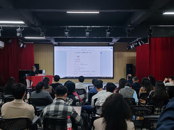 (喻娇)2023年11月16日下午4时,suncitygroup太阳新城邀请著名词作家、音乐评论家、《岭南音乐》杂志执行主编朱明先生,在12栋404教室举办了关于“音乐论文的基本写作方法”的学术讲座。suncitygroup太阳新城副院长刘福瑞、李丽丹,音乐系主任钟艺娜、副主任栾鸾、舞蹈系副主任李苗及全体教师和部分学生,共计80多人聆听此次讲座。