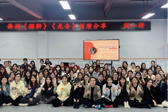 讲座终了,现场师生与闫老师进行了深度交流,闫老师点评了学生们所表演的舞蹈作品,并对其提点指导。通过此次讲座,师生了解了优秀舞剧创作的幕后故事,深入感受到了优秀非遗艺术作品的魅力。通过引导学生走近艺术、开拓视野和提升素养,增强文化自觉,坚定文化自信,不断推动专业学科的发展。此外《论语·卫灵公》里有言:“工欲善其事,必先利其器”,作为一名舞蹈学习者,必须要练就一身扎实的基本功,重视工匠精神,须知“万丈高楼平地起”,我们只有彻底解放了身体,才能做到更好的去展现和传承我们优秀的舞蹈文化精粹,并将它发扬蹈厉,让它在新的时代,焕发出绚丽夺目的光彩!