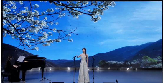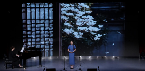 《梨花又开放》是本场音乐会的压轴节目,这首曲子的作者童年时在故乡的梨花树上看妈妈纺线的情景,成年后返回故乡,梨花依旧,然而母亲不在的伤感,抒发了浓浓的思乡、思亲之情。梨花开放的时刻是短暂的,寓意着人生瞬息即逝的美好。