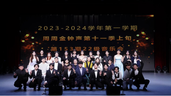 音乐会的最后,全体表演者上台与领导老师合影,纪念这美好的时刻!希望周周金钟声音乐会越办越好!