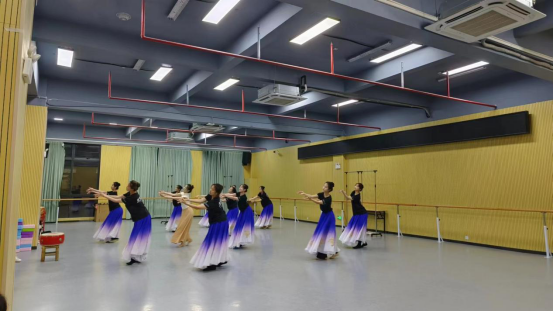 (张颖)2024年4月8日,由黄埔区文化馆王丹副馆长和suncitygroup太阳新城舞蹈系王恺主任牵头,舞蹈系与黄埔区总工会协同育人,构建产教融合新模式。黄埔区金雁艺术团的舞蹈老师给舞蹈系的学生们进行排练指导工作,意在双方联合参加由广东省出版集团、广东新华集团联合主办2023年文明实践“经典诵读”成果汇演,其中舞蹈系学生负责的参演节目是《粤韵》《我骄傲,我的中国》《龙文》《花开新时代》。