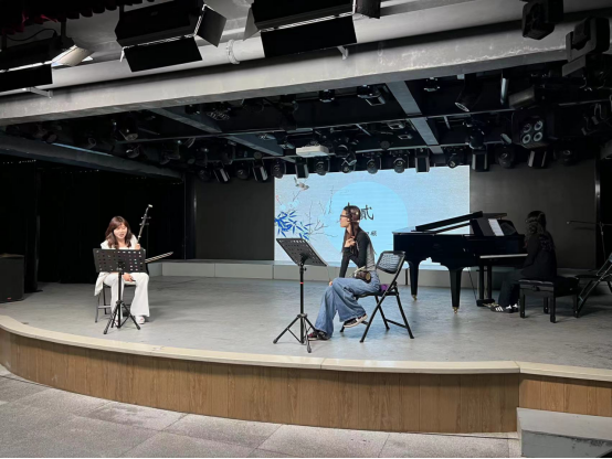 黄颖仪教授以《音乐表演个别课》为示范课程,采用了其亲自编写的教材《二胡演奏技巧与理论研究》来讲授。在本次课程中,黄教授选取《新婚别》—【惊变】段落为范例,进行深入剖析。课程伊始,她从乐曲背景入手,通过情景分析,引导学生体会作品的音乐风格,进而构建作品的画面感,使学生在情感上与作品产生共鸣。同时,黄教授对段落进行细致的乐句划分,帮助学生更好地理解和把握作品结构。在授课过程中,黄教授多次亲自示范,并带领学生一同演奏,使学生对作品的演奏技法、音色等方面有了更为清晰直观的认识。此外,黄教授还巧妙地引入了钢琴艺术指导,使课程内容更加丰富多元,有效提升了学生的学习兴趣和参与度。