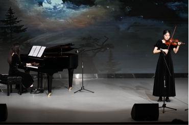 音乐会伴随着林沁心同学演奏的《浪漫曲》正式开始,这首曲子充满了哀愁的色彩,恬静朦胧的晨曦,乐观奔放的舞步停歇后,委婉感伤的哀歌又隐隐传来。接着是廖文雅为大家演唱《春花秋月何时了》,作者通过对自然永恒与人生无常的尖锐矛盾的对比,抒发了亡国后顿感生命落空的悲哀。之后又为大家带来男生独唱《山之高》、《铁蹄下的歌女》、女声双重唱《越人歌》,《百灵鸟不要叫了》和中国艺术歌曲《静夜思》等表演,精彩纷呈。