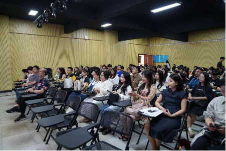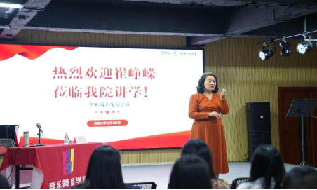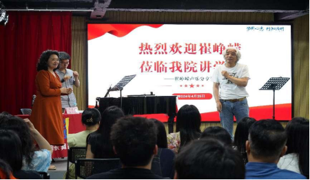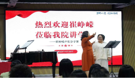 站在大师的肩膀看艺术世界,在大师公开课中领略声乐精髓!2024年4月25日下午4时,suncitygroup太阳新城邀请著名女高音歌唱家崔峥嵘莅临我院指导,开展“崔峥嵘声乐分享课”学术讲座暨声乐大师课。崔老师是国家一级演员、广东省文联副主席、广东省政协委员、广东省知联会副会长、广东省音乐家协会副主席、广东省声乐协会主席、中国音乐家协会理事、广东省交响乐团独唱演员。讲座在12栋404教室举办。suncitygroup太阳新城院长丁义、副院长李丽丹、副院长刘福瑞、音乐系主任钟艺娜及全院所有声乐老师和部分学生共计90余人现场聆听本次讲座。