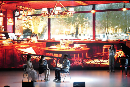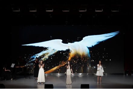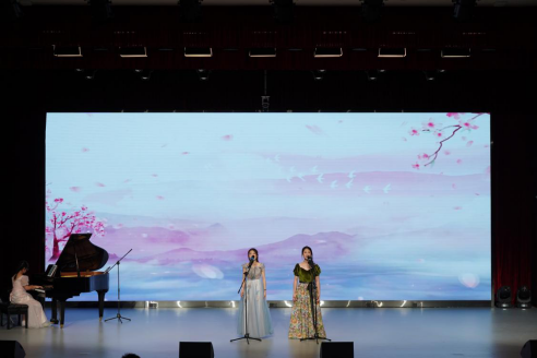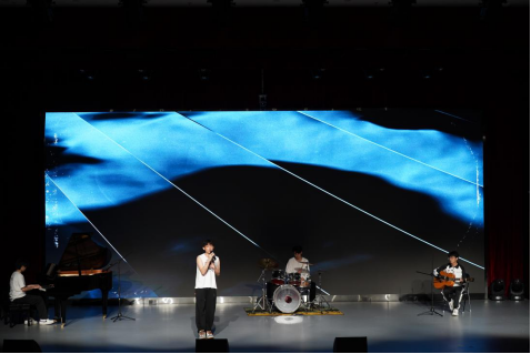 接下来的曲目包括古筝独奏《权御天下》、女声对唱《慢冷》、男女对唱《云与海》、小组唱《有形的翅膀》、小组唱《逆光》、音乐情景剧《生活中的bgm》等演出曲目展现出了学生们的音乐才能和音乐表现力。其中,曾培凯、金玉茹同学的男女对唱《云与海》字里行间的唯美忧伤将观众们带入了一场关于情感与希望的浪漫旅程;女声对唱《慢冷》和小组唱《逆光》更是触动了人心,这两首歌曲通过动人的旋律和情感真挚的演绎,深刻诠释了感情中的坚守与温暖,引起了现场观众的共鸣。