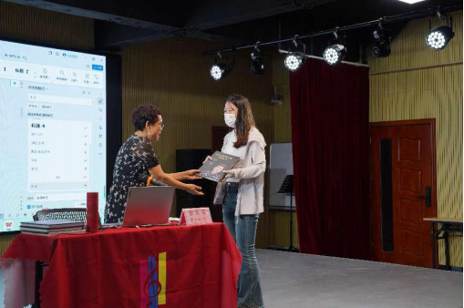 讲座伊始,李丽丹副院长向在座的老师学生们介绍了徐老师,并对徐老师的到来表示衷心的感谢和欢迎。徐秋菊老师以富有感染力的语言,为在场师生们勾勒出了客家山歌的起源与发展脉络。她深入浅出地介绍了客家山歌的历史背景、文化内涵和艺术特色,让听众们对客家山歌有了更为全面和深入的了解。徐老师非常善于调动现场的学习氛围,在场参与抢答的师生都获得了徐老师准备的丰厚奖品。
