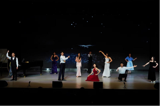 音乐会以器乐合奏《诀别书》作为开场,由蔡晓雯、孙婉盈等同学倾情演奏,钢琴伴奏由萧善柔同学担任。悠扬的乐曲为音乐会奠定了不俗的艺术基调。紧接着是女声小组合唱《我的情歌》,由何亚坤、钟乐娴等同学带来,钢琴伴奏由陈彦尹同学担任。她们甜美的歌声和默契的配合,展现了音乐系女生们的艺术魅力。情景音乐剧《甄媛传》由郭家惠、李彦蔚等同学精彩演绎,钢琴伴奏由寇幸研同学担任。作品以独特的创意和精湛的演技,带领观众穿梭于不同的时空,感受音乐与戏剧的完美结合。情景音乐剧《等着我亲爱的人》由徐琳淋、刘媛等同学演出,钢琴伴奏由霍政言、杨凯婷同学担任。作品深情而感人,赢得了现场观众的共鸣。舞台情景剧《卖报歌》由周慧妍、杨洁敏等同学演出,钢琴伴奏由刘伟鹏同学担任。这部作品以生动的表演和深刻的主题,展现了音乐剧的魅力。情景音乐剧《那些年》通过音乐与戏剧的结合,由蔡立裕和刘志远同学等演绎,讲述了一群年轻人在校园成长道路上的欢笑与泪水,他们的故事触动了在场每一位观众的心。这部原创作品不仅展现了学生们的艺术才华,也传递了对青春美好记忆的怀念和对未来的无限憧憬。《不忘初心》通过音乐小品的形式,传递了坚持梦想、不忘初心的正能量。刘雨筝、温婉莹等同学用真挚的表演和感人的歌声,激励着每一位观众在人生旅途中保持热情和勇气,无论遇到何种困难和挑战,都不放弃追求和梦想。最后本场音乐会的压轴节目原创音乐剧《酒馆》由陈晓辉、梁燕婷等同学演出,这部作品以其独特的艺术风格和精彩的表演,为音乐会增添了一抹亮色。他们的热情演绎和节目的编排点燃了每一位观众的心。