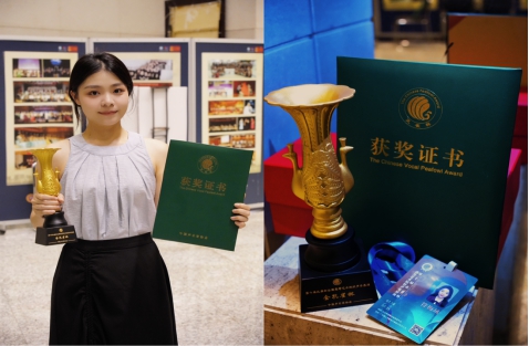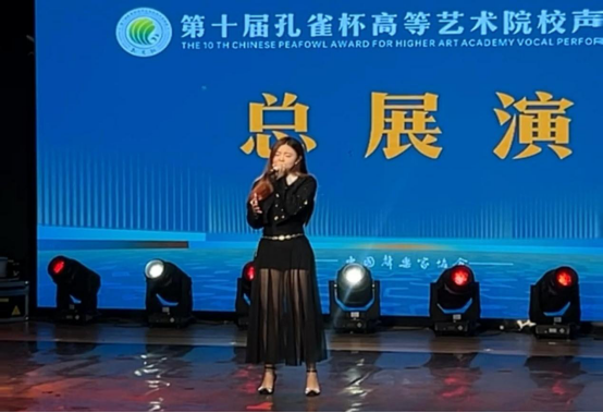 继去年学院青年教师取得“金孔雀杯”奖后,学院又一青年教师获得金奖,这充分展示了学院青年教师的声乐教学质量和表演水平。展演活动中符梅凤老师以92.18分,组别排名第30名优异的成绩入围总展演。在总展演比赛中,符梅凤老师带来了作品《银玲之歌》,最后以95.98分,组别排名第4名的成绩荣获综合师范院校教师美声组“金孔雀杯”奖。符梅凤老师作为青年教师,在自我专业成长上为学生们做出了表率。
