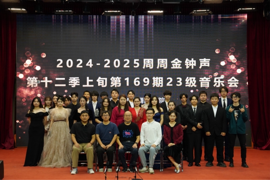 (钟中)在金风送爽的11月,音乐系迎来了备受期待的周周金钟声第十二季上旬第169期23级音乐会。音乐会于11月6日晚上19点在学校一号报告大厅精彩上演,为师生们带来了一场充满艺术氛围的音乐表演。刘福瑞教授、学工组长刘国杰、钟中老师、张智老师、刘依雯老师,共同见证了这场音乐与艺术的表演。