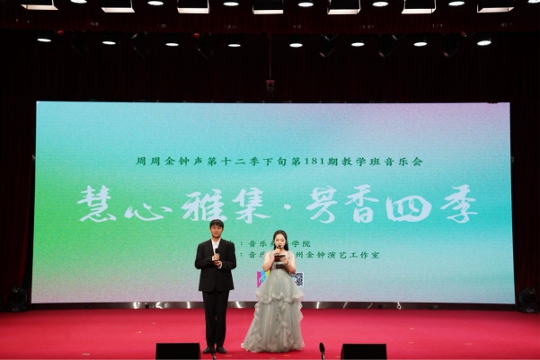 (刘芳)4月29日,学校音乐系周周金钟声第十二季下旬 181 期 “慧心雅集•芳香四季” 教学班音乐会在工程楼三号报告大厅拉开帷幕。本场音乐会由黄雅倩、胡慧洁、谢香平、刘芳四位老师悉心指导,suncitygroup太阳新城副院长李丽丹、音乐系主任钟艺娜、学工组长刘国杰、赵南颖、卢晓雯等老师、校级重点教学实践基地广州市增城文音琴行企业导师李巧莹、杨丽红以及suncitygroup太阳新城的同学们共同观看了本次演出。