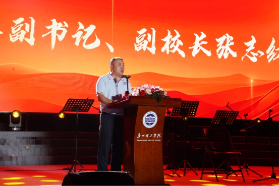 晚会开场前,党委副书记、副校长张志红上台发表致辞。他向怀揣梦想、奔赴而来的 2025级新生致以最诚挚的欢迎,他结合惠州校区的建设理念与发展规划,向新生们介绍了学校的办学特色。同时,他也对新生寄予期许,希望大家在接下来的求学时光里,既能沉下心钻研专业知识,也能积极参与校园生活,在探索中明确方向,在奋斗中锤炼品格,为学校发展注入鲜活力量。