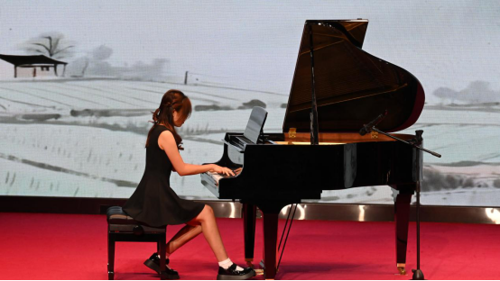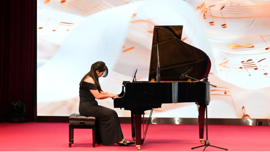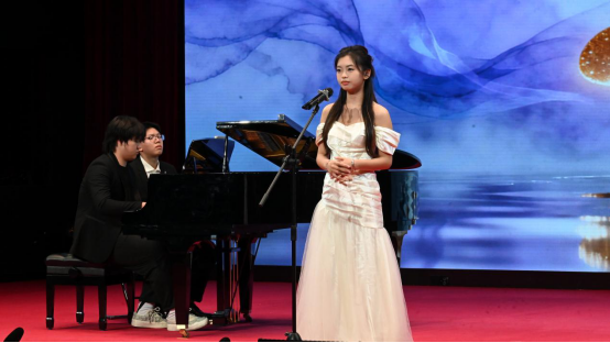 音乐会在陈际宇同学独唱《嘎达梅林》中拉开帷幕。其富有感染力的嗓音,搭配贺耀纬精彩的钢琴伴奏,将歌曲中的情感细腻传达,赢得阵阵掌声。紧接着贺耀纬同学钢琴独奏《肖邦练习曲OP.10,NO.1》,灵动的手指在琴键上跳跃,优美的旋律瞬间点燃现场气氛。上半场,器乐独奏与声乐独唱交替上演。谢洁雯琴弦轻拨,《枫桥夜泊》的清越乐声缓缓漫开,勾勒出月落乌啼、江枫渔火的悠远意境。刘嘉淇的女声独唱《越人歌》婉转缠绵,清亮又含情的嗓音将古典情愫娓娓道来,让人沉醉其中。周漪演绎的《绣金匾》,指尖流转间,悠扬旋律缓缓流淌,满含深情的音符勾勒出质朴绵长的敬意与眷恋。梁泳欣的女声独唱《梧桐树》,在温海燕的钢琴伴奏下,宛如一幅优美的画卷在听众眼前徐徐展开。陈佳盈《梦梦》、刘知越《西部主题幻想曲》、易宜婷《三月桃花心中开》、许琪《肖邦圆舞曲》等节目,也都各具特色,充分展现了24音表1班学子扎实的专业素养。下半场的演出同样精彩纷呈。张芯蕊《山丹丹花开红艳艳》、曾琰婷《泰勒曼G大调协奏曲第二乐章》格外引人注目。让观众沉浸在不同风格的音乐氛围中。卢雯靖的钢琴独奏《贝多芬奏鸣曲op.53,No21》,以高超的技艺将音乐会推向高潮。随后,黄译贤的男声独唱《我心爱的意中人》、古筝独奏《远清秋》等节目,为音乐会画上了圆满句号。