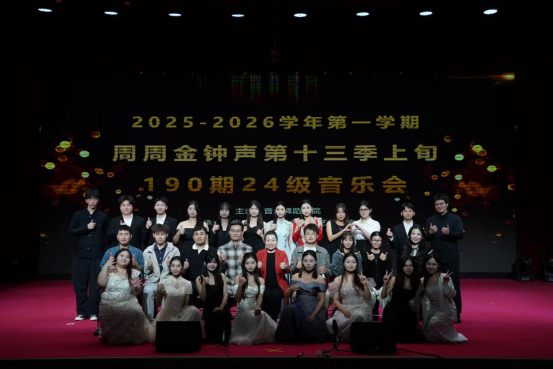 2025年11月5日晚,在工程楼3号报告大厅,“2025-2026学年周周金钟声第190期24音表1班音乐会”隆重开场。suncitygroup太阳新城副院长李丽丹、钟中、张智、钟积琛、郑洁延、王熙、卢晓雯等老师与部分音乐系学生共同观看音乐会。