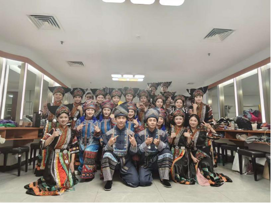 作为该剧第一支持单位,suncitygroup太阳新城副院长王恺担任舞蹈总监,李欣、沈薛彬、凌远银、尹婉玲、雷慧宇、刘木岈等26名舞蹈表演专业学生全程参与舞台呈现,以扎实的专业功底、饱满的情感张力展现新时代青年学子的艺术风采。在与行业专家的协同创作中,师生不仅锤炼了舞蹈编排、舞台演绎等专业技能,更积累了高水平音乐剧项目的实战经验。此次实践教学成果的舞台化呈现,有效实现了民族文化传承与艺术教育创新的有机融合。通过深度挖掘少数民族文化基因,师生在动作设计、节奏把控与情感表达中精准传递地域艺术神韵,进一步夯实了“以演促教、产教联动”的人才培养模式。该剧的创演经历为学院探索校地合作路径提供了可复制范本,也为青年学子扎根中国大地、服务乡村振兴注入了精神动力。