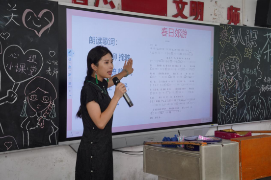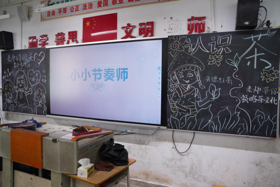 2024年7月14日下午,“艺述戏音·美育童心”百千万工程突击队前往英红镇云岭小学开展“奥尔夫音乐”主题课。课堂上,队员阮海琳把茶文化以播放舞蹈《采茶》视频的形式,让学生们发挥想象力,想象自己是一名采茶农,亲身感受茶文化。他们激发学生们的好奇心,带领他们踏入“奥尔夫”音乐世界的奇妙之旅,队员苏美珺带领学生们通过拍手、跺脚的方式进行节奏练习,共同创造出生动多彩的节奏。在轻松愉快的气氛中,让学生们身体上得到了放松,更让他们的心灵逐渐靠近,用心去感受音乐。