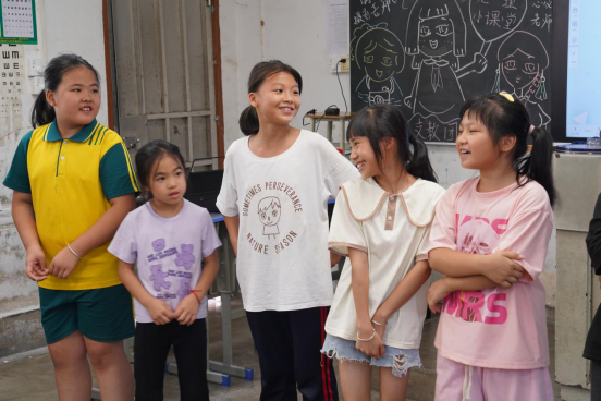 在课室上又响起熟悉而动听的声音“流水声声,黄雀声声......”,队员李心仪将学生们带进戏曲表演课上,通过欣赏、模仿、表演等多种方式充分调动全身器官,让学生们更好地学习粤音文化,感受粤音的魅力。“小老师”不时地给予学生们肯定,让他们自信地展现自己的才华,不断地实践用歌声和肢体诠释他们的情感,仿佛整个世界都被音乐感染了。